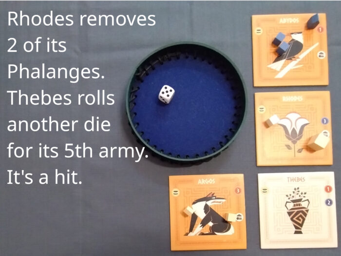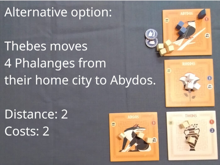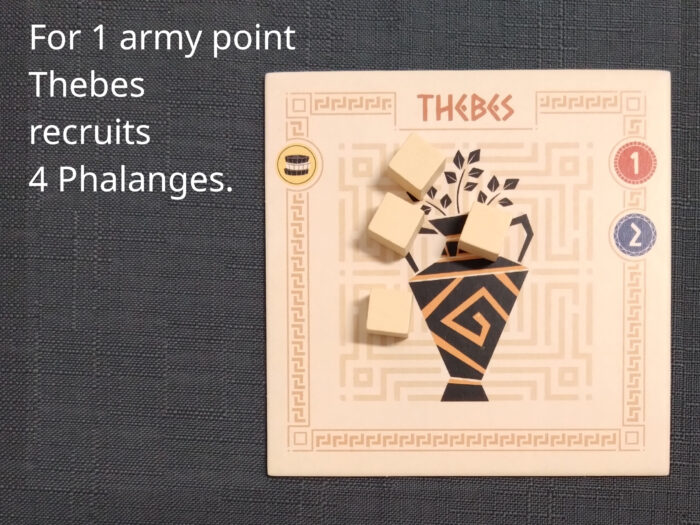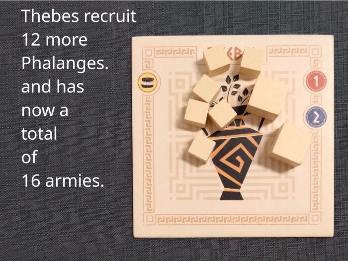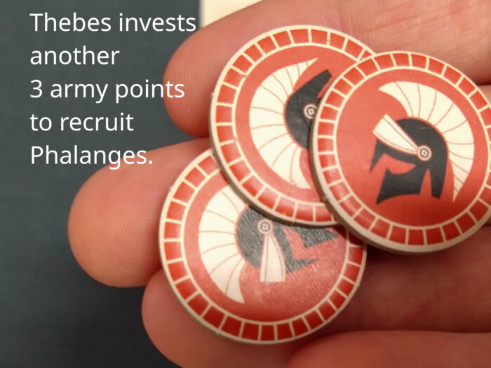 The fourth basic action is recruiting. Use army tokens to recruit an army of Phalanges.